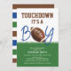 Convite para Chá de fraldas de futebol Blue Brown Concurso Comutação simples é um convite para chás de fraldas de futebol de menino com tema de futebol, futebol de aquarela, texto decorativo azul e um pouco de grama. Excelente para uma mãe e pai apaixonada por futebol.