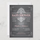 Um convite divertido e moderno a um chá de fraldas para a futura mãe apresenta um efeito de quadro de correspondência, com uma letra que tem o aspecto popular de ser escrito em giz num conselho preto. Com uma mistura eclética de fonte e estilo, em branco e rosa claro, o olhar é divertido e acolhedor - perfeito para um chá de fraldas para uma menina.