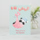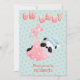 Aqui está um adorável convite para chás de meninas que apresenta um bebê panda descendo em um cobertor rosa padrão do coração que é segurado por um alfinete de segurança do coração. Texto em biscoitos estilizados tipo rosa e padrões brancos diz "OH BABY" no topo, e o texto cor-de-rosa mais escuro no final diz "Por favor, junte-se a nós para CELEBRAR!" A imagem e o texto são colocados sobre um sutil fundo azul estrelado. A parte de trás do convite tem bastante espaço para o seu próprio texto personalizado, e repete o fundo de estrelas azuis, com uma imagem adicionada de uma nuvem com anexos de constelação.