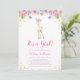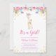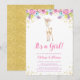Doces convites para o chá de bebê de cera. Este design bonitinho apresenta flores rosa-d'água, roxas e azuis, fawn e faux gold glitter confetti.