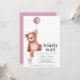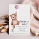 Um chá de fraldas "podemos esperar" com um ursinho de pelúcia e um balão rosa para uma menina. Itens correspondentes disponíveis na coleção Teddy Bear Theme.