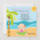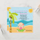 Luau! Há uma menina no caminho! Comece a comemoração/ Luau com este adorável convite para chás de fraldas. Excelente para o tema Havaiano/Luau. Tem um fundo azul claro em torno do convite. No centro é onde você se personaliza com as informações do seu partido. O lado esquerdo tem uma palmeira grande. Há areia por todo o fundo com um adorável bebê hula sentado na areia. Ela está vestindo uma saia com verde limão e uma tampa rosa. Há uma flor de hibisco no cabelo dela. Atrás dela está o oceano azul. No canto superior, um sol amarelo brilhante com um smiley face. Veja os outros designs e produtos que oferecemos. ©JW Ilustrations