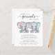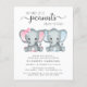 Um doce e econômico convite para bebês gêmeos e chás de meninas com "Dois Pequenos Amendoins Doce Estão A Caminho" escrito em tipografia moderna de cinza mole e um roteiro de na moda com pântanos, e duas aquarelas cor-de-rosa e azul pastel de elefantes bebês. Personalize com o nome da futura mãe e os detalhes do chá em simples tipografia de cinza.