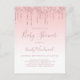 Este convite de chá de fraldas de tendência apresenta uma borda de brilho brilhante cor-de-rosa falsa em um fundo cor-de-rosa ombre. As palavras "Chá de fraldas" e o nome da futura mãe aparecem no guião rosa cor-de-rosa, com o texto restante na letra sans serif.