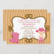 Comece a comemorar com este adorável convite para chás de fraldas. Excelente para o tema da vaqueira/oeste. É perfeito para a mamãe de hoje! Tem um fundo listrado castanho e bronzeado. Há um passeio ao redor do convite. O canto inferior direito tem um bebê adorável vestindo botas de cowboy rosa-quente e chapéu em uma fralda rosa. Veja os outros designs e produtos que oferecemos. ©JW Ilustrations