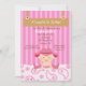 Comece a comemorar com este adorável convite para chás de fraldas. Excelente para o tema da vaqueira/oeste. É perfeito para a mamãe de hoje! Ele tem uma rosa claro e um fundo listrado rosa quente. Há uma placa pendurada no topo do convite. O fundo tem um impressão branco e cor-de-rosa. Há uma menina adorável sentada com botas de cowboy e chapéu em uma fralda rosa. Veja os outros designs e produtos que oferecemos. ©JW Ilustrations