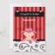Comece a comemorar com este adorável convite para chás de fraldas. Excelente para o tema da vaqueira/oeste. É perfeito para a mamãe de hoje! Tem um fundo vermelho claro e vermelho escuro listrado. Há uma placa pendurada no topo do convite. O fundo tem um impressão de cabeleireiro branco e preto. Há uma menina adorável sentada com botas de cowboy e chapéu em uma fralda rosa. Veja os outros designs e produtos que oferecemos. ©JW Ilustrations