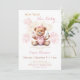 Convite para chá de fraldas do ano novo, bonito e engraçado, com uma adorável menina ursinha com mamadeiras de leite e fogos de artifício em cor rosa e bege de champanhe. Personalize facilmente o texto. Convite para modelo totalmente editável. Kate Eden Art
