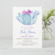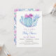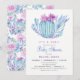 Suculenta convite de chá de fraldas. O convite apresenta cacto violeta roxo e azul suculento e padrão floral.