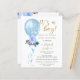 Chá de fraldas de Balão Floral Azul com Brilhante de Orçamento Convite