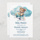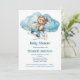 Um adorável ursinho de pelúcia voando num avião neste convite para chá de fraldas. Todos os campos à frente e atrás são editáveis.