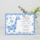 Adorável convite de Chá de fraldas de menino com uma girafa azul clara com fundo polca azul pontilhado. Itens correspondentes disponíveis em nosso compro. Perfeito para um safari, selva ou chá de fraldas de bebê girafa.