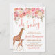Convite para Chá de fraldas de Girafa Floral Rosa