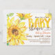 Convite para chás de fraldas de girassol verde e amarelo. Convite floral neutro em termos de gênero.