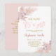 Pampas cor-de-rosa, palmeiras tropicais secas, convite para Chás de fraldas