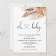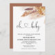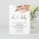 O convite para chás de fraldas inspirado pela Baby Bohemian apresenta um arranjo floral cor de terra com grama de pampas e imagem de caligrafia moderna como um título.