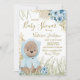 Chá de fraldas de grama de pampas com urso bebê giro vestindo um suéter em um fundo de grama de pampas floral. O convite para chás de fraldas deste rapaz é facilmente personalizado com os seus detalhes de eventos.