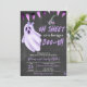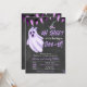 Celebrar o Halloween com nosso convite de chá de fraldas fantasma feminino apresentando um fantasma roxo, aranhas assustadoras, chapéu de bruxa, e um fundo negro impressionante! BBS421
