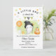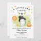 Um pouco de bu está quase a chegar. Convite para o Chá de fraldas do Halloween com um lindo fantasma de bebê a aquarela com chapéu de bruxa, abóboras, corações, estrelas e um balão de laranja. Chá de fraldas de convite para modelo editável.