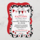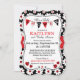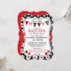 impressão de flores e insetos de senhoras, design de convite para chá de fraldas. As cores são vermelhas, pretas e brancas.