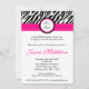 Esses adoráveis Convites de festas de Chá de fraldas de impressão Zebra Hot Pink Strip são impressos em um papel de peso de cobrir de 5 x 7, suave, vibrante e mate. Contém 50% de conteúdo de reciclado. Perfeito para qualquer chá de fraldas, noiva, solteira, casamento ou convite de aniversário.