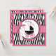 Impressão em zebra doce e selvagem com sotaques cor-de-rosa quente e carrinho de bebê bolinhas com etiqueta 3D, arco e carta de convite para chá de fraldas de bebê.