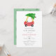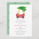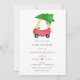 Chá de fraldas com carro vermelho aquoso com árvore de Natal amarrada ao telhado. Personalize com suas informações ou clique em "clique para personalizar mais" para ajustar o tipo de fonte, o tamanho e a cor.
