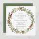 O convite para chá de fraldas temático de inverno apresenta uma faixa de aquarela de eucalipto e pinecones. Personalize com suas informações ou clique em "Clique para personalizar mais" para editar estilos de fonte, tamanho e cores.