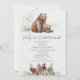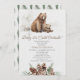 Chá de fraldas de inverno do Brown Bebê é frio do lado de fora do urso pardo e o convite para chás de fraldas de filhotes também apresenta uma cena de inverno esmaecida e cones de pinheiro e arranjo de folhagem de pinheiro. Este bebê neutro por sexo que está frio fora do convite para o chá de fraldas de inverno está pronto para ser personalizado.