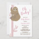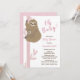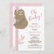 Mãe de preguiça bonita e chá de bebê rosa perfeito para bebê. Rosa e Castanho com fundo branco, você pode alterar a cor de fundo clicando no botão Personalizar!