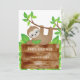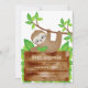 Design de chá de fraldas de preguiça adorável com a mais doce preguiça bebê pendurada num galho com folhas verdes para um chá de fraldas para meninas, chá de fraldas neutro, rapazes chás de fraldas com uma folha verde para trás. Visite nosso compro para ver nossa coleção de preguiças doces.