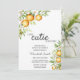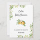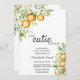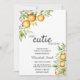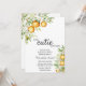 Está a caminho um pouco de gracinha! Convide todos para a festa mais bonita do chá de fraldas com um modelo de convites de cor laranja-d-água. Este chá de bebê cor laranja, bonito, apresenta laranjas lindas e folhas verdes com flores brancas laranja em um design de convite de estilo moderno.