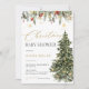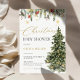 Boho Rustic Christmas Tree Twinkle Lights Winter Holiday Chá de fraldas Invitation. Bohemian Style Drop Botanicals Invitation with Elegant and Simple boho Rustic Tree and Pine Botanicals in Hand-print Watercolor. O fundo botânico verde e o padrão claro são lindos para chás de fraldas de vassoura e chás de fraldas de Natal. Convite simples e imprimível para chás de fraldas de férias e de inverno.