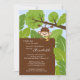 Adorável convite de Chá de fraldas de bebê apresentando um macaco giro pendurado em um galho de árvore colocado em um fundo de folha de safari. Itens correspondentes disponíveis em nosso compro. Perfeito para um chá de fraldas de bebê.