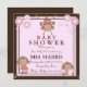Este Convite para chás de fraldas personalizável moderno apresenta macacos sobre um fundo cor-de-rosa e castanho. Personalize-o adicionando seus detalhes na fonte de sua escolha! com