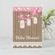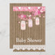 Convite de Chá de fraldas da Rapariga de Madeira Rustic Country com Lace e Mason Jars Rosa