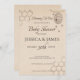 O vamos comemora a mamãe a ser acompanhada deste convite para o chá de fraldas das abelhas. Esta design apresenta pentes de mel e uma colmeia de abelhas, com abelhas engolindo-a em um fundo bege.