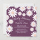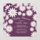 Convite para o chá de fraldas de Verão Primavera moderno, com flores de margarida branca bonito, colocado sobre fundo púrpura chic & na moda plum. Sacudir nosso convite para chá de fraldas de margarida para ver um floral de margarida correspondente para um toque especial extra. Excelente para um chá de fraldas de meninas.