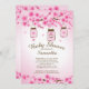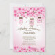 Nosso convite para chás de fraldas para meninas russas apresenta galhos com flores bonito cor-de-rosa com frascos pendurados em um fundo cor-de-rosa. Os potes-mason têm pequenos corações cor-de-rosa e "é uma menina" para um toque especial extra. Sacudir nosso chá de fraldas de meninas do país convidarem para ver uma correspondência de volta.
