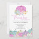 Um convite de chá de fraldas para uma menina de abóbora rosa. Fácil de mudar o texto. Bonito design de aquarela para chá de fraldas de menina.