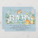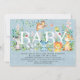 Animais protetor de safari com aquarela convite para chá de fraldas para um menino colocado em um fundo de burlap azul com coordenação de volta para um toque especial extra.