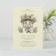 Um rato de floresta branca encantador com cogumelos e verde, convite de festas primeiro aniversario. Sexo neutro para garota ou garoto.