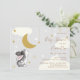 Convite à apresentação de chás de fraldas neutro em termos de gênero, com coelho giro, lua reluzente, estrelas e nuvens em fundo de cinza mole. Personalize com suas próprias informações. Use a Ferramenta Editar Design para alterar o tipo de fonte, o tamanho e ou a cor.