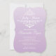 Belo e elegante convite para lavanda de luz roxo, chá de fraldas branco, com uma folha floral de damasco branco contemporâneo floresce. Disponível em nosso compro em uma grande seleção de opções de cores modernas. Fácil de personalizar com as informações do seu partido e garantido para fazer uma primeira impressão perfeita. Um convite de chá de fraldas Elegante para um chá de fraldas feminino.