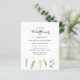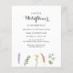 Chá de fraldas orçamentário estilo Boho Convite com flores murais pintadas com aquarela em um layout simples na parte inferior. O título do evento é "Um pouco de flor selvagem está a caminho". Este Convite floral botânico é excelente para um primavera de estilo rústico ou chá de fraldas de menina de verão.