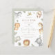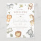 Um bonitinho safari animais tem um convite para chá de fraldas. Este design apresenta animais aquosos na borda do cartão. Há um leão, rinoceronte, tigre, zebra, papagaio, macaco, girafa, e um elefante. Na frente do cartão lê-se "um pouco selvagem está a caminho!" seguido dos detalhes do evento e do nome da mãe em letras elegantes. O esquema de cores é uma paleta verde e castanho macio. Cartões à volta de um fundo verde pastel, decorados com pequenos pontos de aquarela branca. Como parte da seleção do orçamento do Zazzle, esta folha não vem em tamanhos padrão de cartão. Para colocar este design em uma placa padrão, você pode encontrá-lo na coleção ou usar o Zazzle Make Machine para transferi-lo para o seu produto preferido. Veja a coleção ligada nesta página para itens correspondentes ou visite a nossa loja para mais convites para chuveiros de bebês.