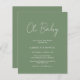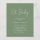 Chá de fraldas verde-sábio/verde-oliva moderno com um simples design com "Oh Baby" em uma tipografia de estilos rústicos. Este elegante convite neutro de gênero com um layout minimalista é excelente quer você esteja tendo um menino ou uma garota.