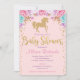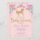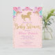 Convite para chá de fraldas de ouro e cor-de-rosa