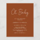Um convite de chá de fraldas de orçamento colorido de abóbora moderno com um simples design com "Oh Baby" em uma tipografia de script de estilo rústico. Este elegante convite neutro de gênero com um layout minimalista é excelente para um chá de fraldas de outono/Halloween, quer você esteja tendo um menino ou uma menina.