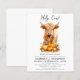 Bem-vindos aos convites perfeitos para um banho de bebê para uma festa do outono! Nosso convite "Santa Vaca, Estamos Tendo um Bebê!" apresenta um lindo bezerro de vaca em terras altas cercado por abóboras e folhagem de outono. As cores quentes e o design lúdico fazem dele a escolha ideal para a sua fazenda ou chá de fraldas do Halloween. Quer você esteja esperando um garoto ou uma garota, nosso convite à "Santa Vaca" é certamente para encantar seus convidados e dar o tom para um evento divertido e festivo. Então, por que esperar? Peça seus convites para chuveiros de bebês com temática animal de fazenda hoje e se prepare para celebrar a chegada de seu pequeno estilo! COPYRIGHT © 2023 Judy Burrows, Black Dog Art - Todos Os Direitos Reservados. Convite para Chá de fraldas de outono de Vaca Highland Cuja Superfície Orçamental